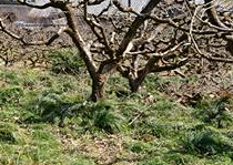 柿の木の根元にある雑草を刈り、土に肥料を加えました。